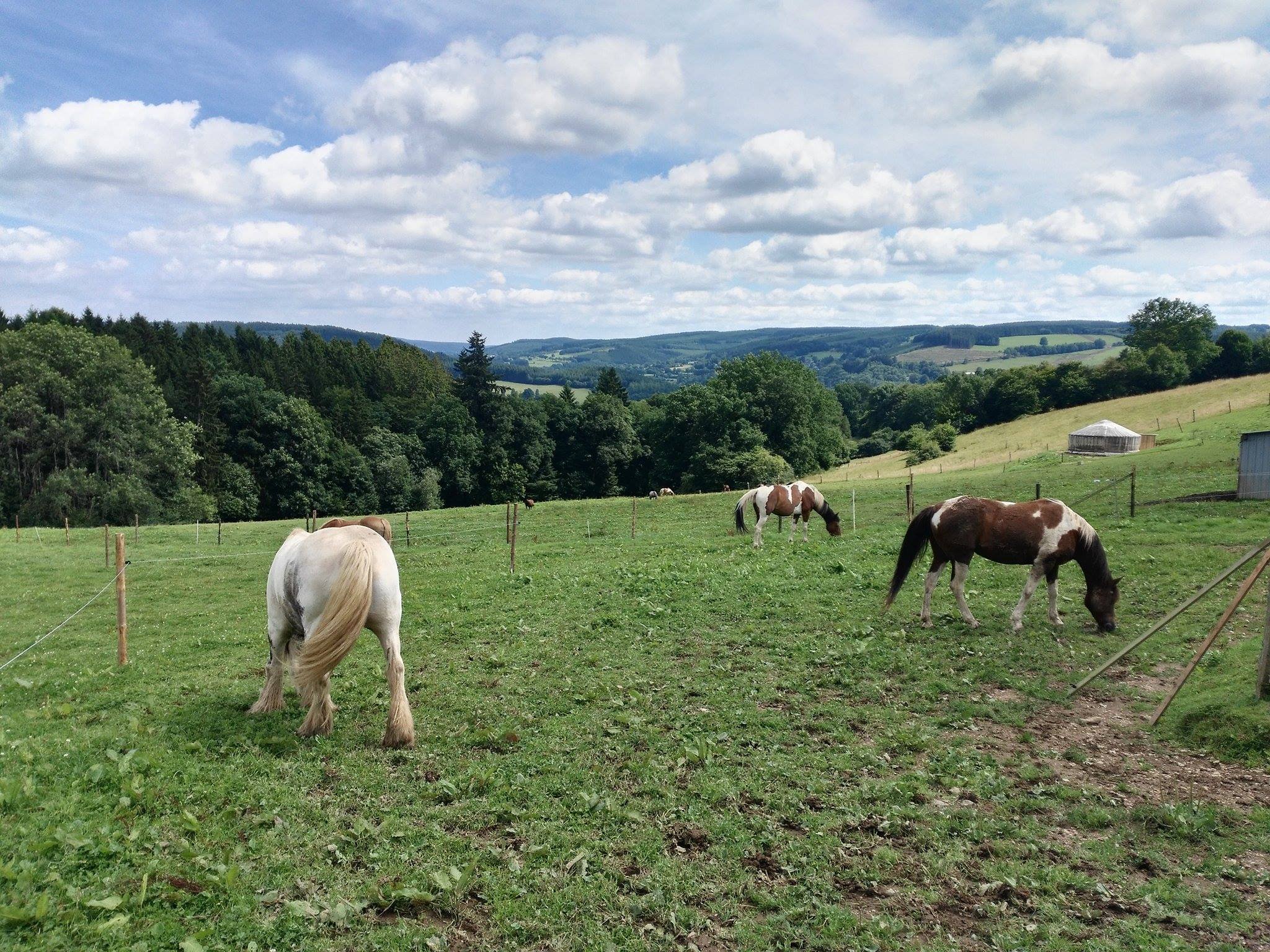 pour randonner en étoile autour de notre ferme. Le choix d'hébergement pour vous et vos chevaux vous revient, entre maison, tente ou yourte et boxe ou paddock avec foin, vous avez le choix