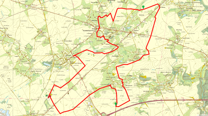 De / A : Ligny (Parking - rue du Tienne) Carte ING 47/1-2